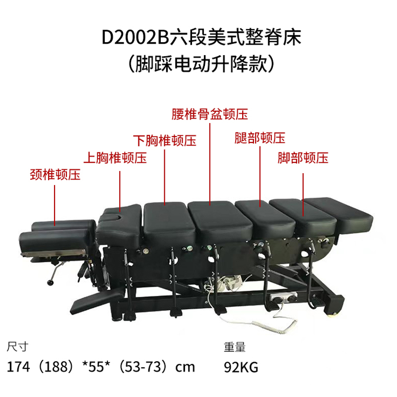 D2002B六段美式整脊床(腳踩電動升降款)